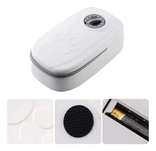 Comedero automático con temporizador programable. Permite establecer horarios de alimentación precisos para 48 h, ideal para perros y gatos. Diseño doble para comida seca o húmeda, fácil de limpiar y fabricado en material ABS resistente. Perfecto para mantener una dieta controlada y sin estrés.